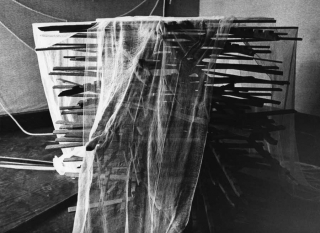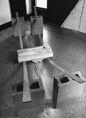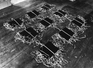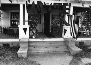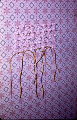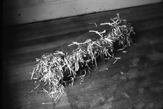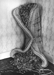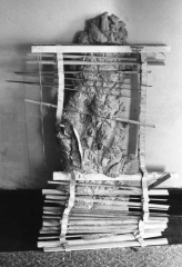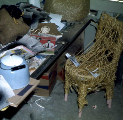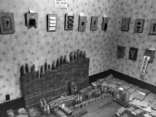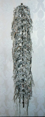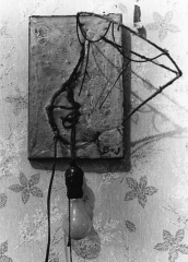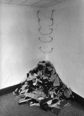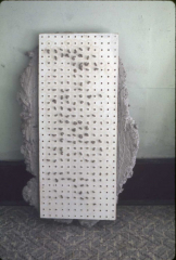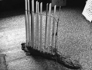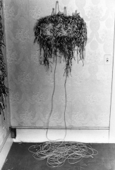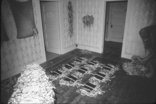 Bob Manley, a professor at Murray State, and I discovered a two story house located next to the campus of Murray State. It was going to be torn down so we requested permission to use it as a gallery until that point. We begin my gathering materials from all over the community and storing them at the house. From there we created themes for individual rooms and halls eventually filling the whole house with 3-D work. One room was shaped insulation, another had a dirt floor filled with assorted individual works using glass, cotton and rocks, another was totally full of artificial flowers. We used whatever we found. You get the idea. We sold individual pieces from the exhibit and plaque room by best offer. Work that didn’t sell was just left for the demolition equipment. We had a blast doing it!